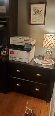 I spent a while online trying to find a lateral file cabinet that would fit my room arrangement and work with existing furniture pieces. I was very happy to find this piece (and a matching end table) which are simple, stylish and perfectly match the finish of my other furniture. Both pieces required assembly and the included instructions are well done, clear, concise and extremely easy to follow. We are very satisfied with our purchase!