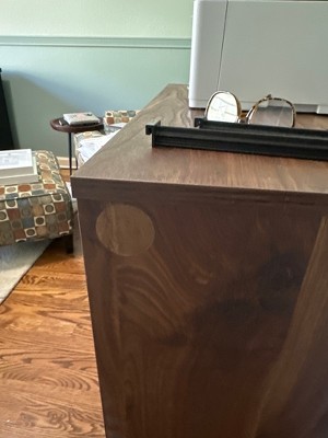 Took a long time to put together and drawers don't glide smoothly enough. Careful because laminate dings easily. Overall, it is functional, looks nice, and matches my World Market desk perfectly.