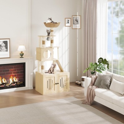 2-in-1 Cat Tree with Hidden Litter Box Enclosure – 66.9" Tall Multi-Level Cat Condo with Perches, Scratching Posts & Private Litter Compartment