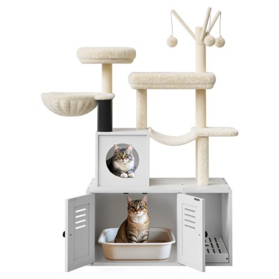 2 in 1 Corner Pet Kennel for Dogs and Cats with 2 Food Bowl, Cat Scratching Post, Top Perch Bed, Multi-Functional