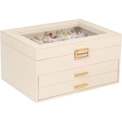 - Say goodbye to tangled jewelry! Dedicated necklace slot on the lid, built-in divider for additional ear stud storage, removable ring/earring middle tray, and a spacious bottom compartment for bracelets, watches, or accessories