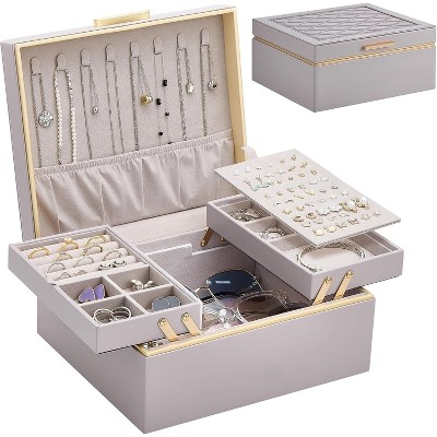 2-Layer Necklace Organizer Box with Clear Lid, Tangle-Free Storage