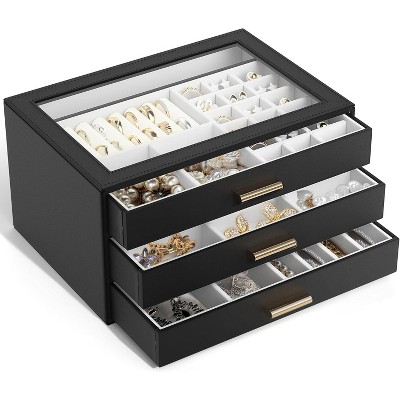 - DIY Considerate Details: This sleek jewelry box comes with double stackable layer and removable compartments create large capacity and different layout. Both layers with removal baffles can meet different needs and keep all types of jewelry organized, neatly, beautifully displayed. You can visually see all of your precious belongs, makes selection easier,while being space savvy!