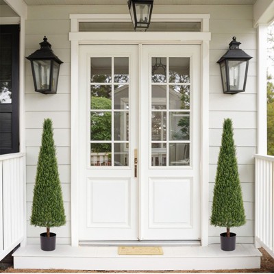 2-Pack Artificial Bushes with Ground Spikes, UV Resistant Fake Shrubs for Outdoor Garden, Realistic Fabric Plants for Porch Patio Decor,Multicolored