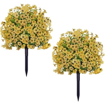 2-Pack Artificial Shrubs with Ground Spikes, UV Resistant Fabric Outdoor Bushes for Garden, Porch & Indoor Decor