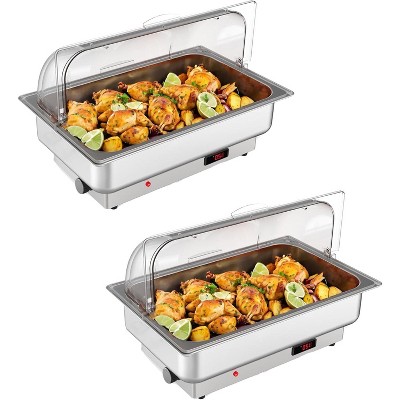 2 Pack Chafing Dish Buffet Set, 8QT Rectangle & 5QT Round Stainless Steel Food Warmer Sets with Lid, Food & Water Pan, Fuel Holder for Events Parties