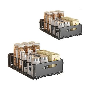 2-Pack Pull-Out Cabinet Organizer, Slide Out Drawers for Kitchen & Bathroom Cabinets, No Drilling, Black.