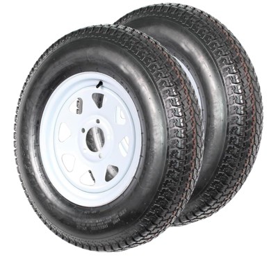 2-Pack ST205/75D15 Trailer Tires & 15" Black Spoke Rims, 6PR Load Range C, 5 Lug 4.5", Heavy Duty, Easy Assembly