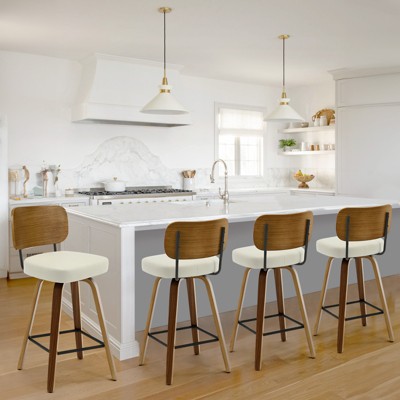 2 Pack Swivel Bar Stools, 26" Modern Counter Height Bar Stools for Kitchen Island, Upholstered Fabric Bar Stools with Back & Metal Legs, Beige