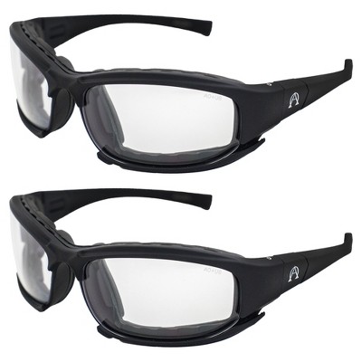 - Vented foam padding on this motorcycle eyewear is removable, leaving the frame open like a regular sunglass frame.