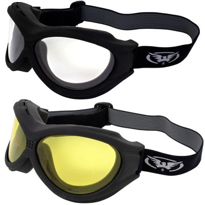 2 Pairs of Global Vision Eyewear Z33 Safety Motorcycle Goggles with Smoke, Yellow Lenses