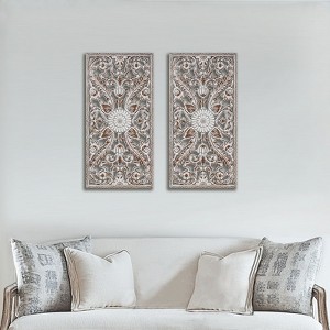 2 PCS Botanical Panel Distressed Carved Wood Wall Decor Set