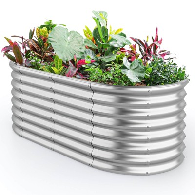 2 Pcs Galvanized Steel Raised Garden Beds, Outdoor Planter Boxes for Vegetables & Flowers