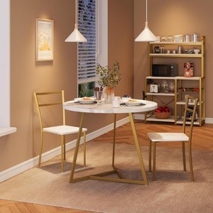 2-Piece Round Dining Set - Modern Table & Upholstered Chairs for Small Spaces