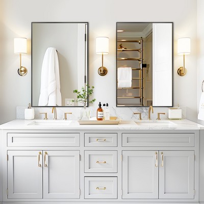2 Pieces 36 In.H x 24 In.W Aluminum Alloy Fine Edged Right Angled Arch Black Hanging Mirror Frame Wall Mirror
