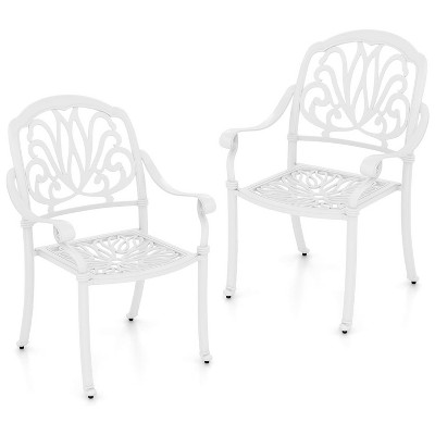 Fit your outdoors perfectly with these 2-piece patio chairs! There are 2 thickened and soft cushions for the widened seat and backrest in order to make you comfortable. The hook and loop fasteners prevent seat cushion from blowing away. Likewise, the cover of seat cushion can be removed, so you can wash it with ease. Made of rustproof iron frame, these outdoor dining chairs are suitable for outdoors, such as patio, garden, backyard and balcony, etc