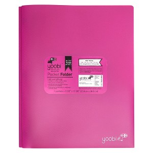 2 Pocket Plastic Folder with Prong Fasteners Pink - Yoobi™: Stationery, 3 Hole Punched, 100 Sheet Capacity, Internal Pockets