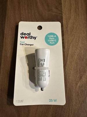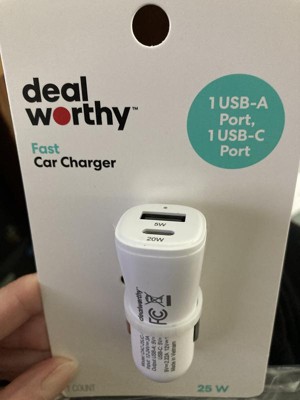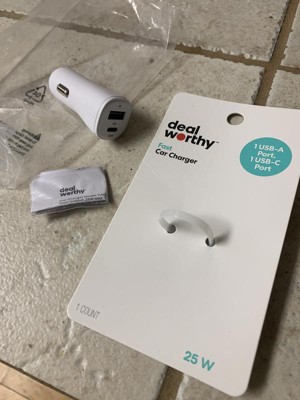 2-Port 25W Car Charger - dealworthy™ White: USB & USB-C Car Adapter