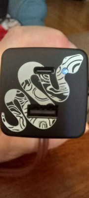 Great little cube and I appreciate the dual user output, USB-A (older style) and USB-C (new style). And this is the first cube I've owned that has a LED on it's face that shows you when it's plugged in. But that means it draws phantom power if you leave it unused and plugged in. I'm disappointed that the USB-A outlet is capped at 5W max and only the USB-C output is 20W. Combined outlet for both being 25W. But it is unique in that the artist allowed their work to be represented on this wall charger.