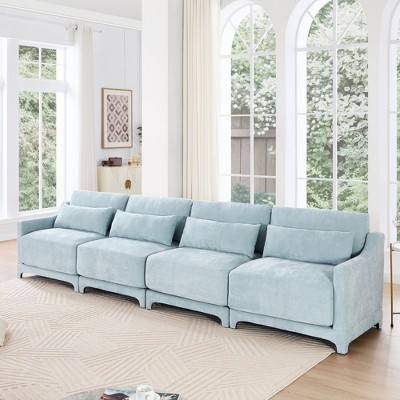 2-Seater Blue Sofa Chenille Fabric with One Ottoman and 2 Lumbar Pillows Easy Install