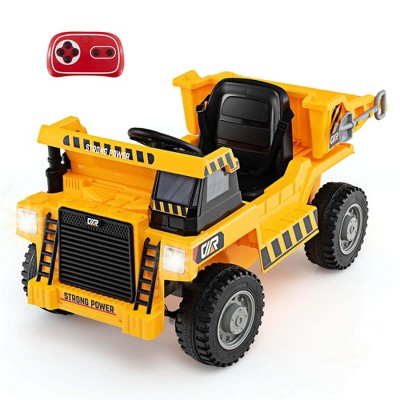 2-Seater Electric Ride on Truck Toy Car Construction Vehicle, 12V Kids Ride on Dump Truck, Remote Control, Key Start, Shovel, Dump Bed, Music, Pink