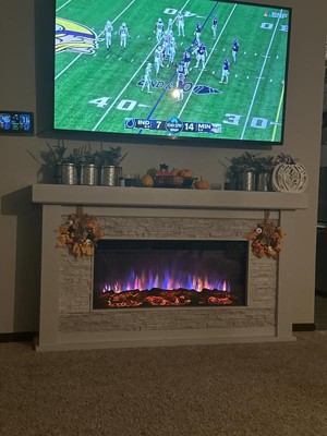 Bought this on clearance and am blown away. It looks AMAZING in our home, like it was always meant to be there. I like the various lighting settings. Heat is pretty good, although we don’t use it too often. The only minor quibble is I wish the light flicker was a bit more rapid to mimic real flames, but that’s extremely minor. Highly recommended.
