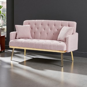 2-Seater Teddy Fabric Sofa with Tufted Back & Gold Legs