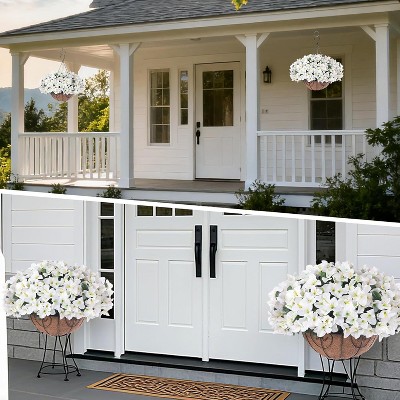 2 Set Artificial Outdoor Geraniums Flowers with White Basket, Artificial Hanging Flowers, 12 Pcs Geraniums Flowers for Christmas, Patio, Home Decor