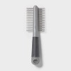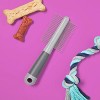 Keep your four-legged buddy well-groomed with this Two-Sided Dog Comb from up&up™. The dual grooming comb features soft, rotating pins to easily detangle furry hair, while removing loose hairs, fleas, eggs, burrs and other debris. Designed with an ergonomic handle for comfortable use, this two-sided grooming comb is suitable for long-haired pet coats.