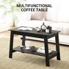 - Versatile Dual-Tier Storage Solution: Elevate your organization and display options with this coffee table's two-tier structure. The open rectangular storage compartment effortlessly accommodates storage bins, plant arrangements, an array of books, and other necessities . It's designed to keep your belongings within reach while maintaining a clutter-free and inviting atmosphere.