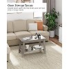 - Versatile Dual-Tier Storage Solution: Elevate your organization and display options with this coffee table's two-tier structure. The open rectangular storage compartment effortlessly accommodates storage bins, plant arrangements, an array of books, and other necessities . It's designed to keep your belongings within reach while maintaining a clutter-free and inviting atmosphere.