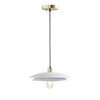 The Saben 2-Tier Layered Shade Pendant by INK+IVY provides a simple and classic addition to your dining room or kitchen decor. This single bulb hanging pendant features a double layered disc shade, in a matte white finish, to create a mid-century modern design. The gold ceiling base complements the shade, for a striking look. Elevate and brighten your space with the unique and eye-catching style of this pendant light. 1 Type A bulb is needed (not included).