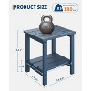 This durable outdoor side table combines practical functionality with weather-resistant construction, featuring a two-tier design that maximizes small-space efficiency. Crafted from rugged HDPE material, it withstands sun, rain, and temperature extremes without fading or cracking. The sturdy build provides reliable stability on various surfaces, from pool decks to garden patios, while the low-maintenance surface simply wipes clean. Perfect for holding drinks, snacks, or decorative accents during outdoor relaxation.