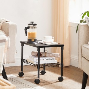 Where Do You Put Your Printer? On the table top? Or on the floor? When you find yourself having no space to set your office supplies close by, or trying hard to bend down and get your copies, it³Õ time to create your printer its own little corner with a home printer stand. Printer up Top, Papers BelowPut the printer on the top, and store paper, ink, and other supplies on the metal shelf so they are always at hand when needed. The metal shelf of the rolling table cart is height-adjustable to fit items of different heights. Printer Stand on WheelsFeaturing a compact size and 4 wheels, you can roll this mobile printer stand around when you need it or hide it under the desk to get it out of the way. 2 wheels are lockable so it³Õ easy to keep it in place. Specifications: - Color: Black - Material: Metal, Particleboard - Product Size: 16.1è x 12.2ˆ¸ x 15¶[ (41 x 31 x 38 cm) - Product Weight: 7.3 lb (3.3 kg) - Max. Static Load Capacity of Table Top: 66 lb (30 kg) - Max. Static Load Capacity of Metal Shelf: 44 lb (20 kg) Package Contents: - 1 x Printer Stand - 1 x Instructions SONGMICS Notes: - When assembling the plastic clips, keep the µäOP?arrow facing upwards. After assembly, check the clips and make sure they donÖÉ move up and down. - Click the plastic clips precisely on the notches to make sure each shelf is at a horizontal level. - When assembling the shelves, tap the corners of each shelf with a mallet to ensure stability. - Do not put overweight items on the product.