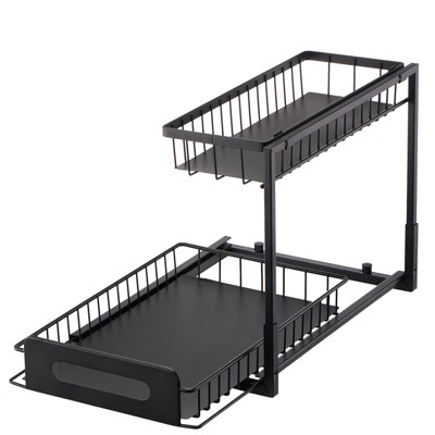 2-Tier Pull Out Under Sink Organizer, Adjustable Metal Kitchen Cabinet Storage Shelf for Kitchenware, Cleaning Supplies & Tableware
