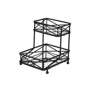 Organize your vanity while maximizing space with the Home Details 2 tier sleek vanity tower. Designed as a freestanding 2 tier tower with mirrored base bottom makes this a decorative storage piece. Perfect for organizing your perfume bottles, jewelry, makeup or toiletries. The matte black finish gives it a sleek style to fit in with any home decor!