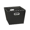 2-Toned Medium Tapered Storage Bins give you style and structure with eye-catching, two-toned fabrics that capture your fancy even as they conquer your clutter. Each storage bin has a bright geometric design with vibrant, contrasting colors that make the print pop. Tapered sides create even more interest by drawing your eye along a diagonal line. Built-in grommet handles make filling and moving your bins nearly effortless. The bin's larger size, with wide top and narrow base, make it easy to fill with accessories, scarves, blankets, and more. With a wire frame and reinforced bottom, you can be organizing in no time. And more importantly, have fun doing so! This set of 2 black bins has a solid black exterior and white polka dot interior. Each medium bin is 10 inches high, 12 inches wide, and 14 inches deep.