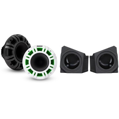 - TWO-WAY: The wake board speaker kit features a 20oz magnet structure that powers (2) 0.5” neodymium dome tweeters, (2) 4” polypropylene cones w/ butyl rubber surround and 1” aluminum mid-woofer voice coil for a full range stereo sound reproduction