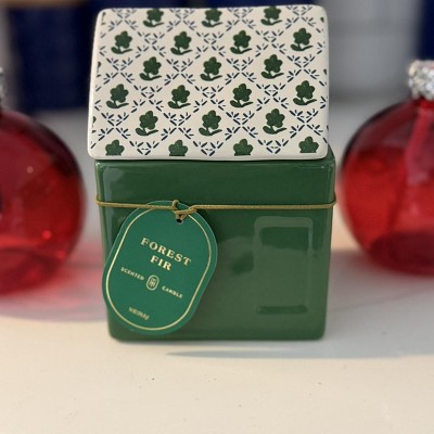 [This review was collected as part of a promotion.] I purchased this 2 wick ceramic lidded forest fir house candle & absolutely love it! The scent of Christmas trees is strong enough to fill a room even if not lit but not too powerful. It smells cozy & comforting with a spicy sweet scent. I love the two-wick design making it easier to burn longer. The quality of this candle is well made & absolutely love the design displaying a classy green charming look. For the quality, style & value I recommend adding this to your winter season!