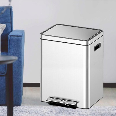 Trash Can, Stainless Steel Dual Compartment Step-on Recycling Bin with Soft-Close Lids & Removable Plastic Inner Buckets