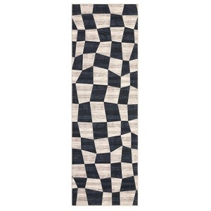 2 x 6 ft Polyester Dark Blue Rectangular Hallway Entryway Bathroom Kitchen Geometric Checkered Modern Machine Washable Runner Rug