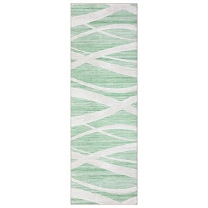 2 x 6 ft Polyester Imitation Green Rectangular Hallway Bathroom Entryway Kitchen Office Foldable Line Printed Modern Washable Area Rug