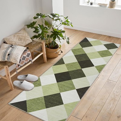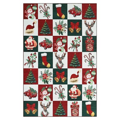 2 x 6 ft Polyester Red Brown Rectangular Indoor Laundry Bathroom Kitchen Distressed Floral Print Vintage Machine Washable Runner Rug