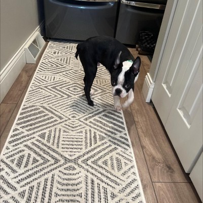 Inspired by Art Deco design, our jazzy geometric rug is power-loomed with a short pile. The all-over pattern is woven on an ivory background. Add some graphic mid-century punch to your living room, dining room, entry, or bedroom with this easy-care rug.