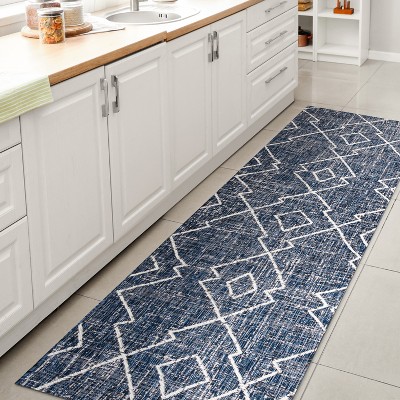 JONATHAN Y Kafel Bohemian Blue/Ivory 2 ft. x 10 ft. Indoor/Outdoor Runner Rug, Non-Shedding, Easy-Clean