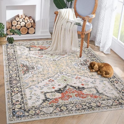 2'x6' Retro Mottled Flowers Runner Rug Boho Design Non-Shedding Easy Care Washable Low Pile Carpets for Bedroom Entryway Office Dining Table Caramel