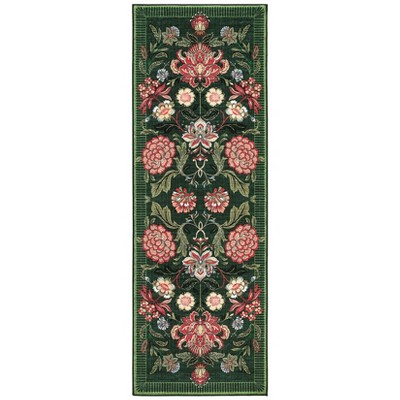 2'x6' Washable Floral Print Geometric Bordered Rugs for Living Room, Ultra Thin Non Slip Retro Accent Large Carpet for Bedroom Dining Room, Green