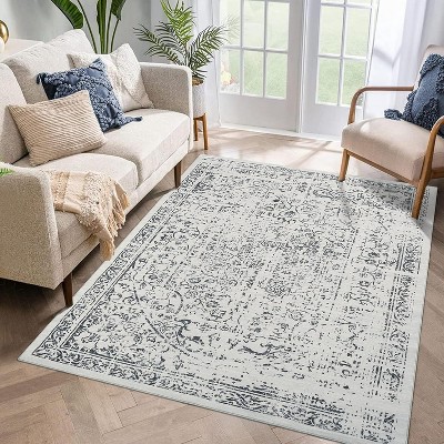2'x6' Washable Modern Plaid Area Rug, Low Pile Non-Slip Geometric Soft Carpet, Stain Resistant Checkered Rug for Bedroom, Dark Gray