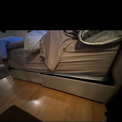 Bed arrived. Set up headboard only, we were awaiting our queen mattress. Headboard easy to set up and looked like picture. Weeks later when our mattress arrived we set up rest of bed. Boards are all warped but we made them work. Then came the drawers. They do not fit together nicely no matter how you do it. So they in the end do not work. The cross bar that gives extra support does not even reach across the drawer not even the right length. We took apart and put back together. Waste of our time and money. Two stars because the headboard is nice and easy to assemble BUT we bought bed because we needed the storage