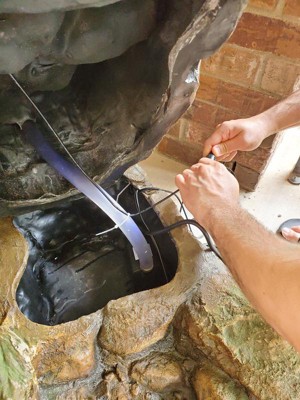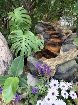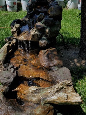 [This review was collected as part of a promotion.] This fountain is a beautiful well crafted piece. Everything went together easily and it only took 5 minutes to set it up. I placed this outside my bedroom window on a timer so I can listen to the water flowing from the rocks. This is a fountain I would highly recommend.